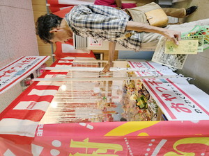 ユーカリ通信や昨年のお礼状などをお持ちいただくと参加できるラッキー抽選。